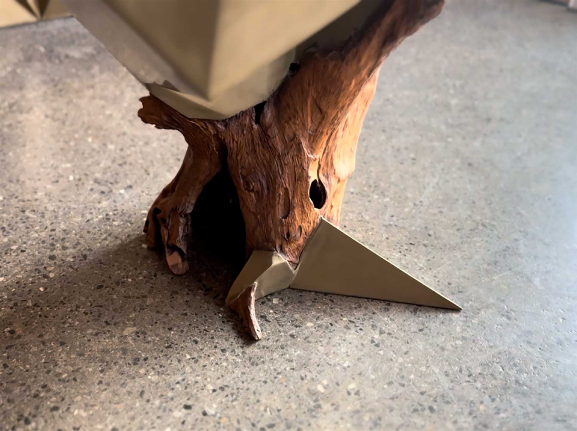 جاءت فكرة هذا العمل عندما وجد الشيخ علي جذع شجرة ضخماً يبلغ طوله 30 قدمًا، وكان يفكر في كيفية تحويله إلى قطعة فنية وظيفية.